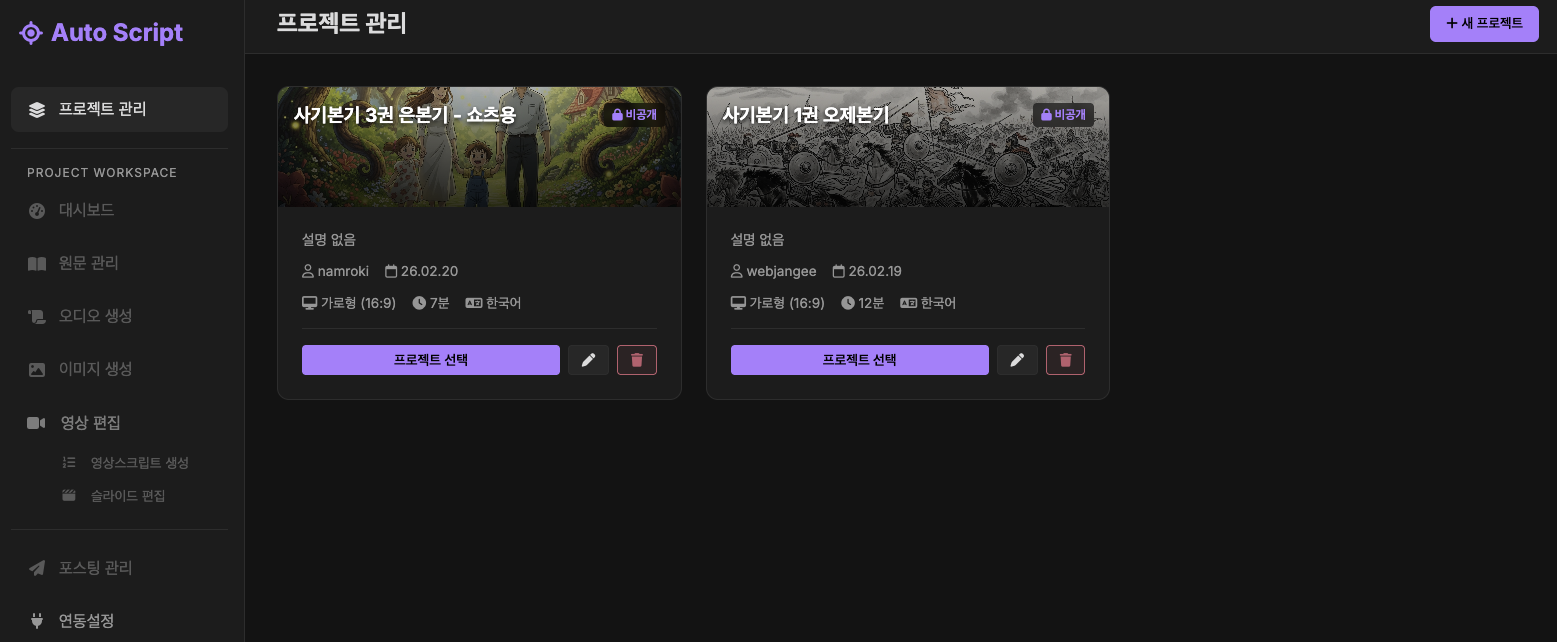- 롱폼 - 10분 내외 -> 쇼츠 릴스 영상, 1분 내외 동시 업로드